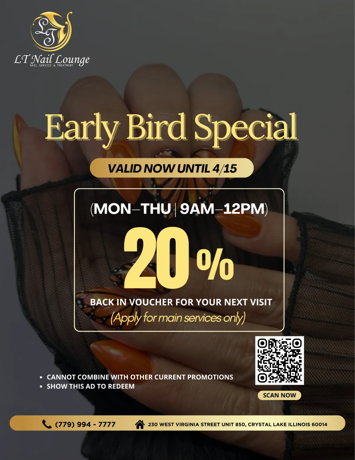 π Early Bird Special at LT Nail Lounge! 20% back in voucher