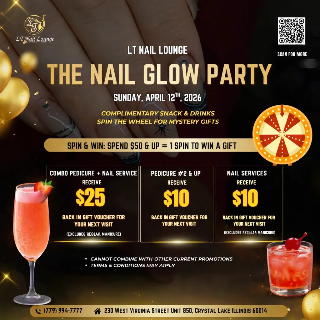 This is the form for you to fill out to receive our The Nail Glow Party. After filling out we will redirect you to our online booking page. Please book an appointment from there. We might need to call to confirm. Valid only for appointments on Sunday, April 12, 2026.